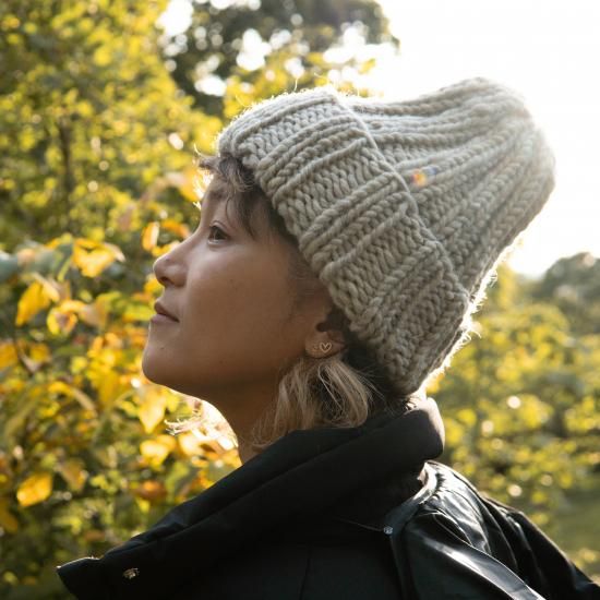 オーバーサイズ感がおしゃれな、素朴で肩の力を抜いた優しさのあるニット帽「ムッフィ(MUFFI)」。