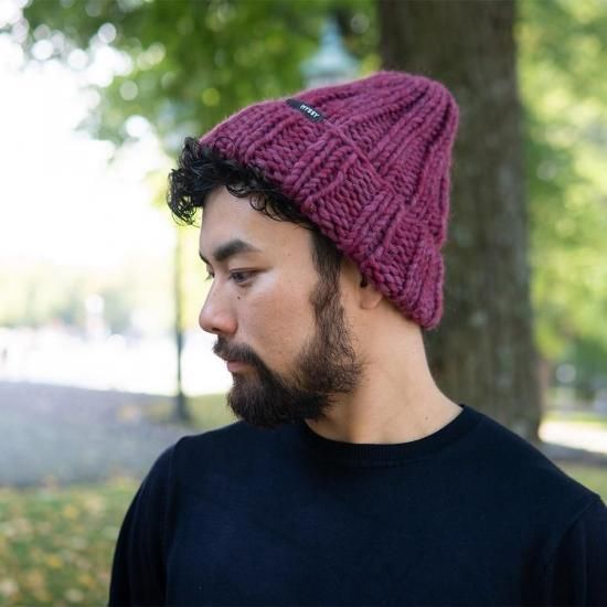 太めの毛糸をしっかりと編み上げたムッフィは、使用初めはきつく感じることがあるかもしれません。 しかし、使用1〜2週間で頭の形になじみ伸縮し、使えば使うほどに頭に馴染んでいきます。ぜひ長く長くご愛用頂きたいニット帽です。