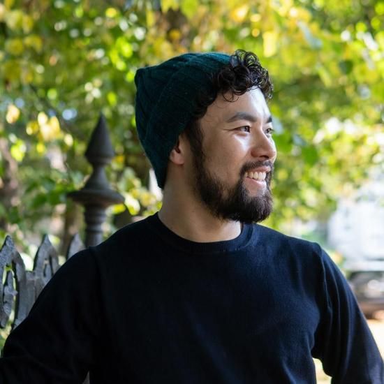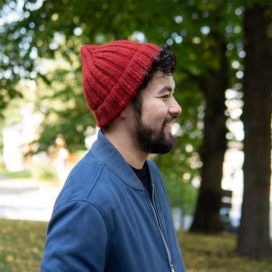 すっきりとしたシルエットで、男性にも人気の高い手編みニット帽「ファルメスター/FARMESTER」。頭にぴったりとフィットし、手編みの温もりの中にクールな印象を漂わせます。
