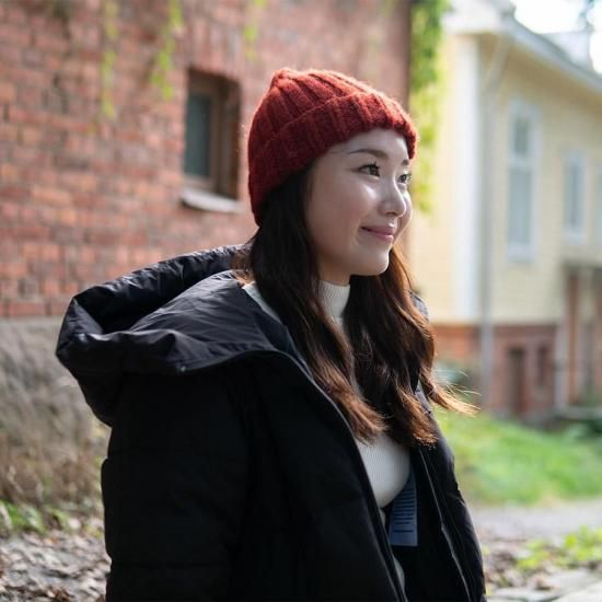 素材の毛糸はフィンランドに育つフィンシープ種の羊毛から作り、カラーは自分たちで染め上げる。素材や製造方法、そして地球の未来に深いこだわり持ってつくられたニットです。フィンランドから、たくさんの愛情がたっぷりつまった世界でたった一つのニット帽をお届けします。