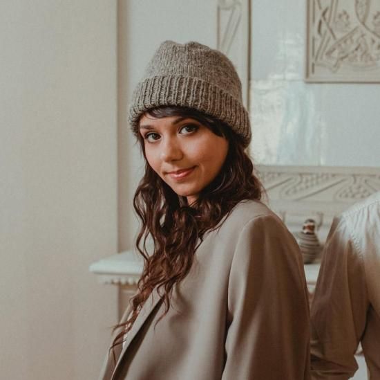 シンプルでミニマルな中に、手編みならではのぬくもりを感じさせる上質なニット帽です。
