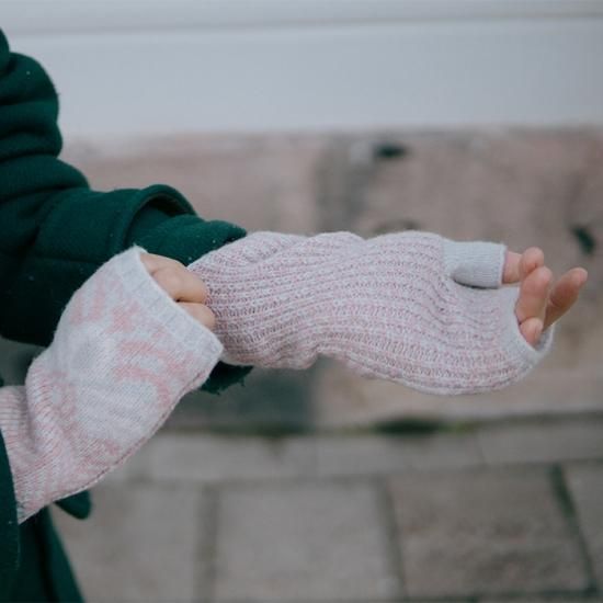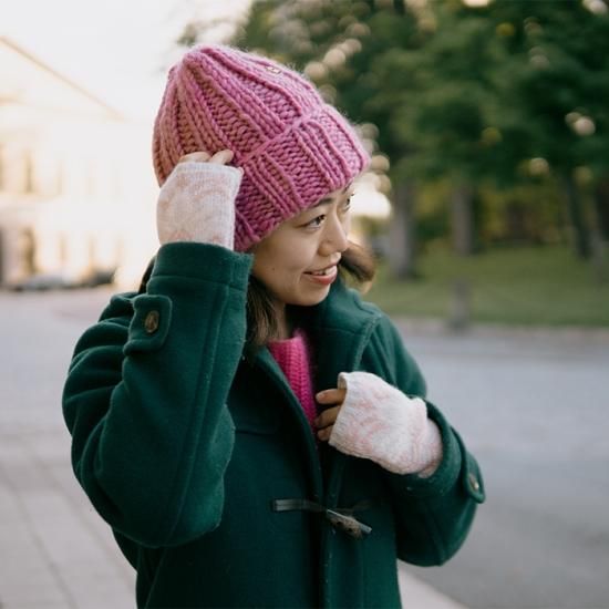 筒状に編まれており、締め付け感がありません。もう一方のフォルム「ハンドウォーマー」のように、手首部分が2重になっていないタイプです。