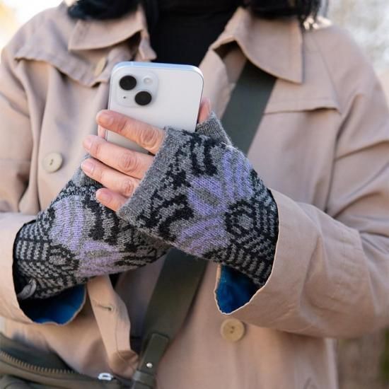 第2関節くらいまで覆う長さで、指先が自由になる手袋(アームウォーマー)は、タッチパネルの携帯やタブレットもそのまま使えて便利です。