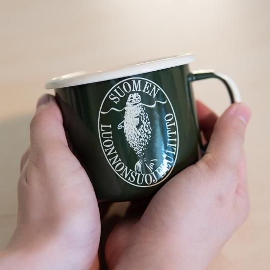 シンプルでどこかレトロ感のあるおしゃれなロゴがデザインされた琺瑯/エナメルマグカップ。こちらは「フィンランド自然保護協会」のオリジナルアイテムです。普段使いはもちろん、ピクニックやキャンプなどのアウトドアにも。暮らしの中でフィンランドを身近に感じることのできるマグカップです。
