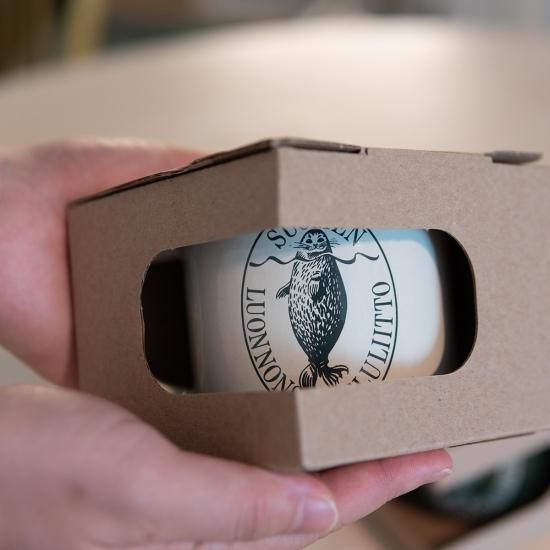こちらのカップの売上金の一部はフィンランド自然保護協会の運営のために使用され、サイマーワモンアザラシの絶滅を防ぐための活動にも使われます。