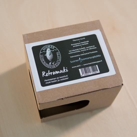 こちらの琺瑯マグはオリジナルの個箱入りです(箱サイズは11x10.5xH8cm)。素朴でフィンランドらしさたっぷりなボックスは、あえてそのままギフトしてお渡しするのもすてきです。フィンランドが大好きなあの方に。アウトドアが趣味のあの方に。個性的な贈り物としてご利用ください。