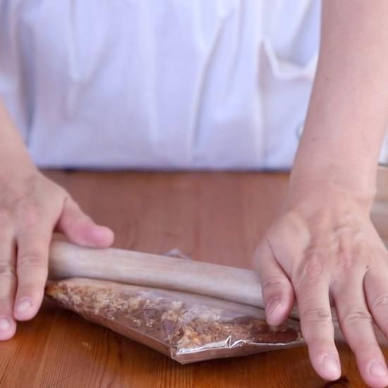 バター、植物油、水、アラック香料/リキュール/牛乳などの液体、着色料。ラップ、麺棒、ベーキングペーパー、ゴムベラ、ハケ。