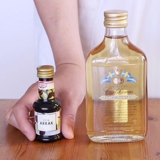 独特の甘みと香りがあるアラックは本格的な「ダムスーガレ」に欠かせない香りです。このお味を試してみたいという方は、別売り「アラックアロマ30ML」をあわせてお買い求めください。こちらはこのキットのためにスウェーデンから直輸入した貴重な香料です(1つのキットに小さじ1-2杯ほどを使います)。