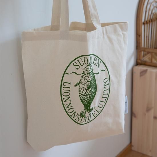 こちらのトートバッグの売上金の一部はフィンランド自然保護協会の運営のために使用され、サイマーワモンアザラシの絶滅を防ぐための活動にも使われます。