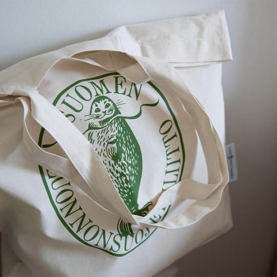 トートバッグの素材や品質、そして地球環境へのこだわり。またロゴデザインの由来、さらにそもそも「フィンランド自然保護協会」のオリジナルアイテムであること。なにもかもにフィンランドらしさがぎゅっとつまったトートバッグです。