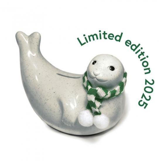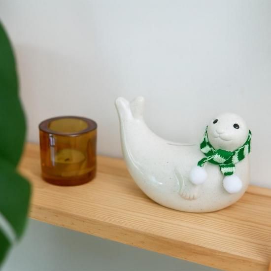 思わず集めたくなるマフラー付きアザラシ貯金箱、毎年秋ごろからの販売を行います。ページのポップアップ表示される「再入荷通知を受け取る」にご登録頂くと入荷後自動メールにてご連絡いたしますので、ぜひご利用ください。