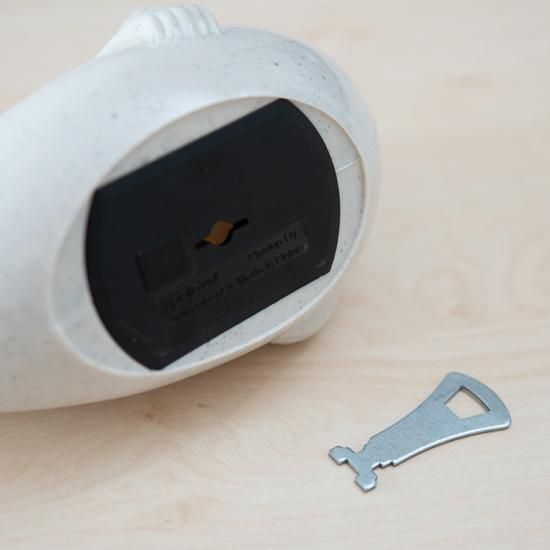 この貯金箱は、もともとフィンランドの銀行で子どもたちにノベルティとして配られていたものでした。当時、子どもたちはカギは銀行に預けておき、貯金箱がいっぱいになったら銀行で開けてもらっていたというかわいらしいエピソードも。