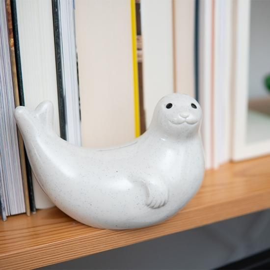 シンプルな貯金箱は、デスクまわりや本棚など物が多くなりがちな場所に置いても違和感がありません。仕事のデスクやパソコンまわりにほっこりするアザラシ貯金箱を置いて、「小銭があったら入れておこう!」くらいの感覚で、北欧のオブジェとして愛用するのもいいですね!