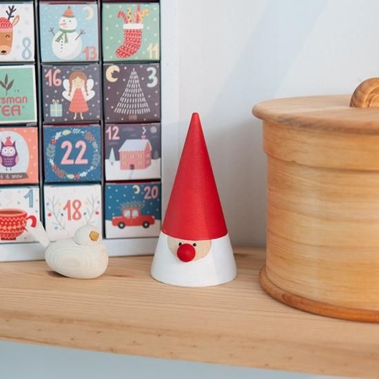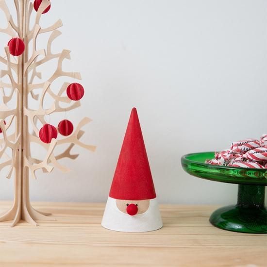 スウェーデンの老舗木工インテリアメーカー「ラッセントレー」より、素朴で可愛らしい木製クリスマストムテが届きました。赤いお鼻にとんがり帽子型のトムテは表情がなんとも愛らしく、窓際やテーブルにちょこんと置くだけでクリスマスムードが高まります。小ぶりなのでクリスマスのテーブルコーデにも使いやすくぴったり。北欧好きなお友達へのクリスマスプレゼントにもおすすめです。