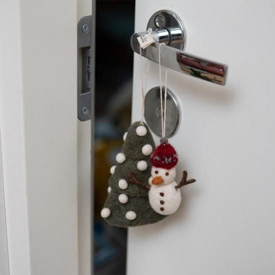 ドアノブに引っ掛けるのも、簡単にいつものお部屋がクリスマスや秋冬ムードになるのでおすすめです。フェルトなので付けていてもわからないほど軽く、ドアの開け閉めの際に当たっても音はしませんし、扉に傷がつかないというメリットも。