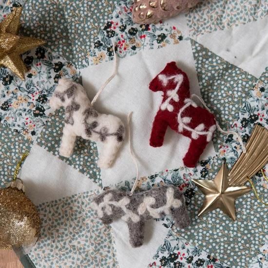 北欧と手仕事のぬくもりを感じる、3種のフェルトオーナメントセット。クリスマスシーズンやお正月にはもちろん、秋から冬にかけて玄関やリビングを彩る小さな幸せをお届けします。