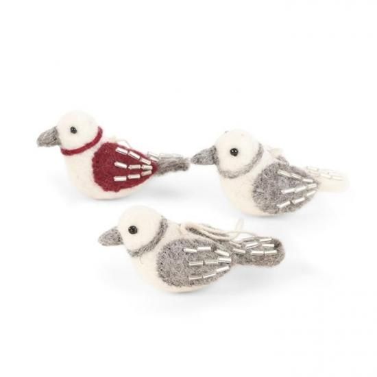 暗い冬の夜に灯りを運ぶような可憐なフォルムのバードには、きらりと光るビーズが縫い付けられ、華やかさもあります。
