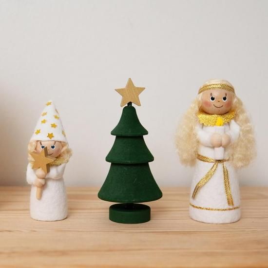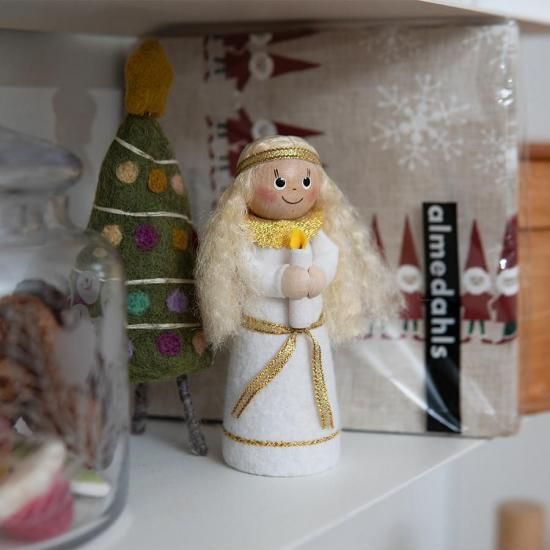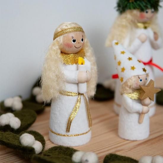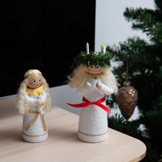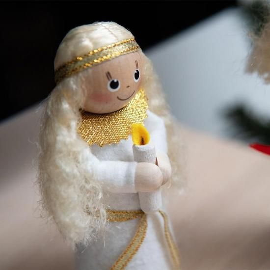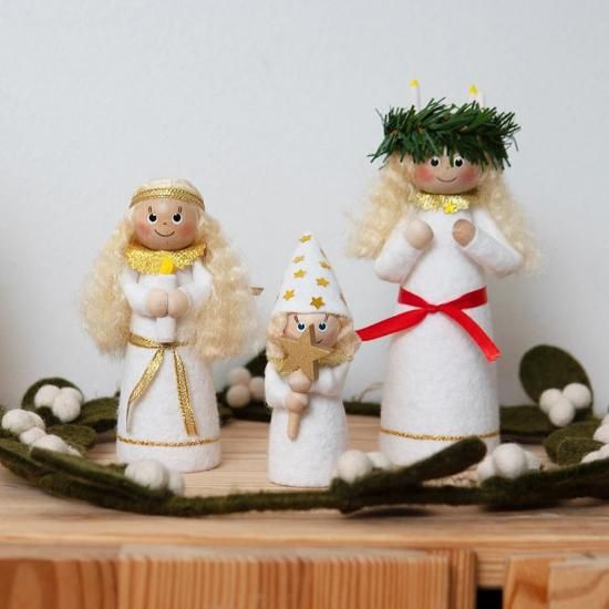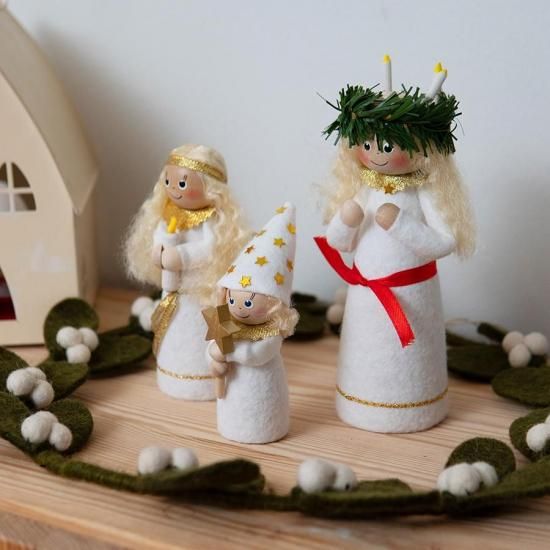北欧のクリスマス行事「聖ルチア祭(Luciadagen/ルシアの日)がテーマになった、ミニチュアドール3種類。それぞれサイズが違うので、お祭りを思わせるように行列にして飾ったり、気に入ったドールをひとつだけ取り入れても可愛いですよ。