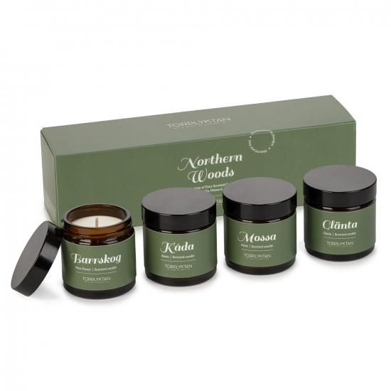 「北欧の森」シリーズで一番人気の「パインフォレスト」をはじめ、「コーダ」「モッサ」「グレンタ」をギフト箱に詰め込んだ4点セット。森の香りをイメージさせる、北欧デザインがおしゃれなグリーンのギフトパックに入れてお届けします。
