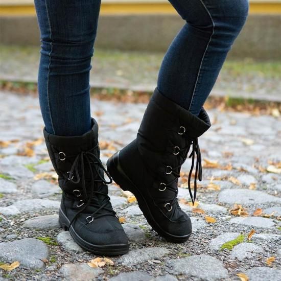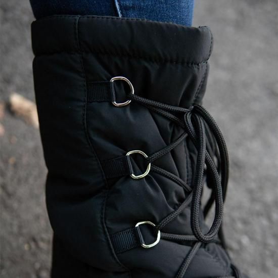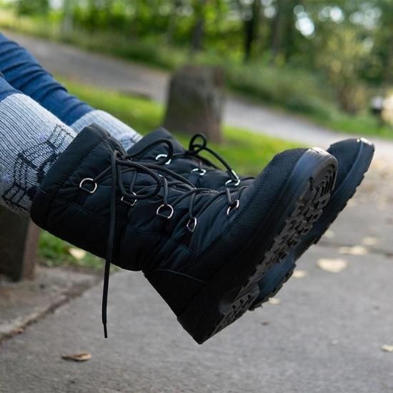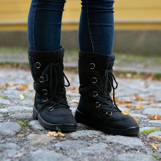 ふんわりとしたシルエットとフロントのレースアップがおしゃれなウィンターブーツ「HAAVEET/ハーベート」。すっきりシンプルなブラックブーツは、街にもアウトドアにもなじむ万能ブーツ。こちらは2025年の新作モデルです。