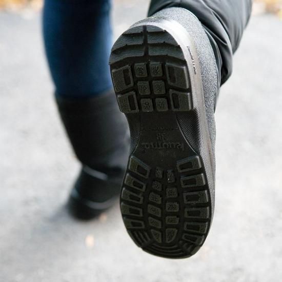 弾力性のあるヒール部分がアウトソールにまっすぐ接着され、しっかりとかかとを支えます。足が靴の中で曲がらずに履きやすく、衝撃を吸収してくれて歩きやすいです。アイスバーンでも滑りにくいと定評のKUOMAのアウトソールは研究を重ねた独自の配合のポリウレタンを使用。丈夫で耐久性、柔軟性に優れ、断熱性に優れています。