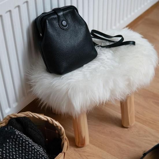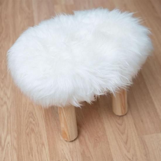 美しい光沢と毛足の長いシープスキンが、ゴージャスで上品な印象を演出し、インテリアの「主役」としても映えるスツールです。